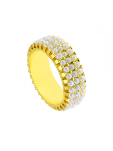 Linda Aliança aparador inteira cravejada em pequenas pérolas sintéticas banhada em ouro 18 kilates.