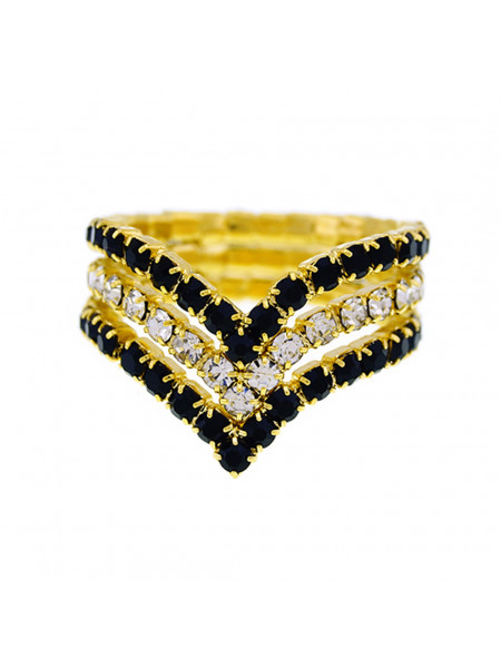Anel Horus Import Preto e Cristal Triplo Banhado Ouro Amarelo 18 K - 1010101