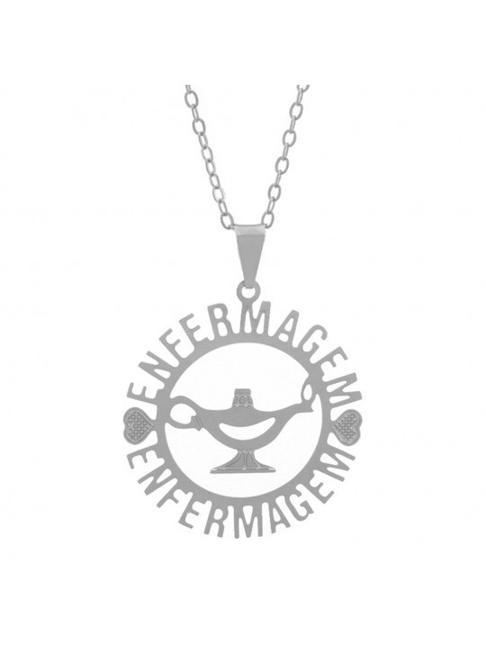 Gargantilha Profissões Pingente ENFERMAGEM Banhada Prata - 2060194